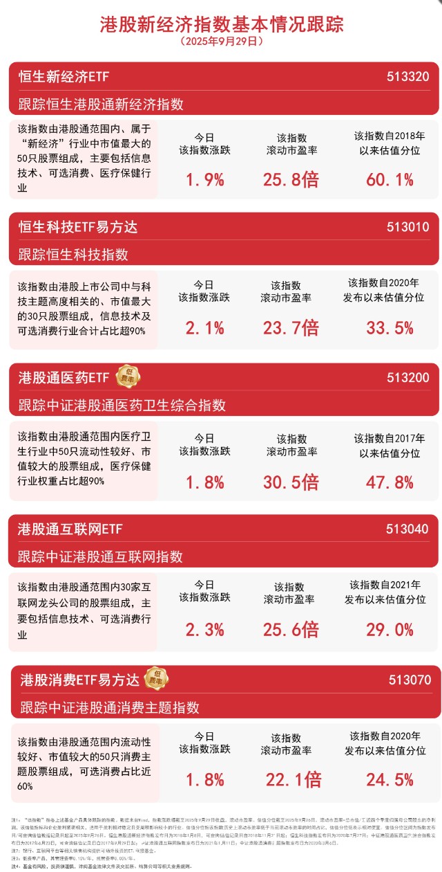 港股今日走強,半導(dǎo)體、集成電路、芯片等科技相關(guān)概念漲幅居前。截至收盤,中證港股通互聯(lián)網(wǎng)指數(shù)上漲2.3%,恒生科技指數(shù)上漲2.1%,恒生港股通新經(jīng)濟指數(shù)上漲1.9%,中證港股通醫(yī)藥衛(wèi)生綜合指數(shù)、中證港股通消費主題指數(shù)均上漲1.8%。Wind數(shù)據(jù)顯示,截至上周五,恒生科技ETF易方達(513010)近一月凈流入額超40億元,居同標(biāo)的ETF第一。